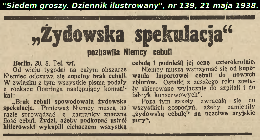 - The Onion Affair in 1938 [from archival Polish newspaper];